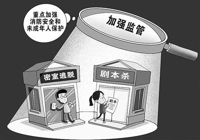不久前,文化和旅游部等五部门联合发布《关于加强剧本娱乐经营场所管理的通知》,强化密室逃脱、剧本杀等近年来快速发展的剧本娱乐经营场所新业态的监管,让人拍手叫好。