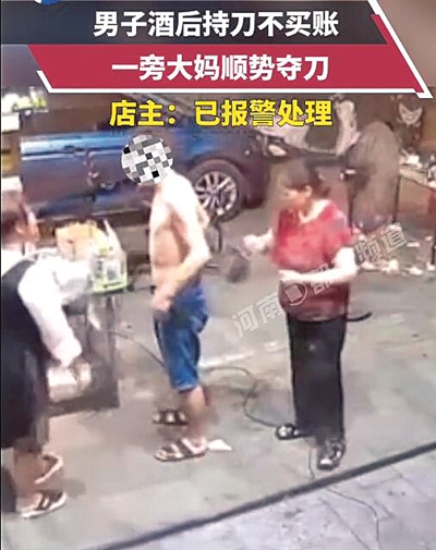 近日,湖北武汉,一男子酒后不买单还拎菜刀威胁店主。一名大妈见状,悄悄走到男子身后,淡定将刀夺走,全程不过几秒钟,目前店主已报警。网友:大妈不愧是大妈,分分钟解除威胁。
