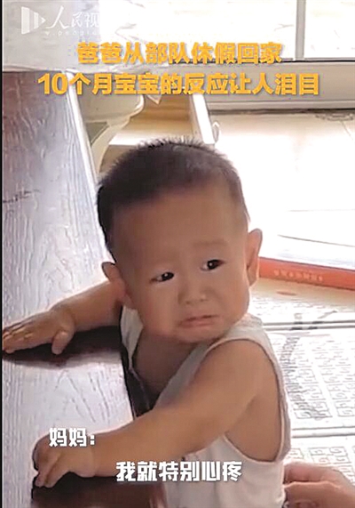 近日,山东枣庄,半年没见的爸爸从部队休假回到家,刚满10个月的宝宝见到后,既熟悉又陌生,第一反应是委屈大哭。妈妈说,爸爸和孩子平时也会视频通话,孩子哭的时候觉得特别心疼。