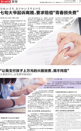 浙江法制报 案卷 00007 “让我支付孩子上万元的兴趣班费,我不同意” 2022-08-26 2 2022年08月26日 星期五