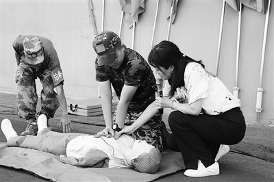 近日,玉环市消防救援大队消防员在市外国语学校开展消防知识“进军训”活动,向新生介绍消防安全知识。通讯员 王梦婷