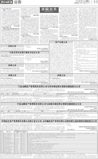 宁波金融资产管理股份有限公司与单单债权转让暨债务催收联合公告