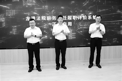 近日,龙港市人民法院举行自主研发的“共享法庭庭务主任履职评价系统”启用仪式。