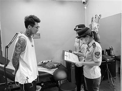 同时,执法人员还对美容院、按摩店等可能存在提供文身服务超范围经营的情况进行摸排,当场下达5份整改通知书。