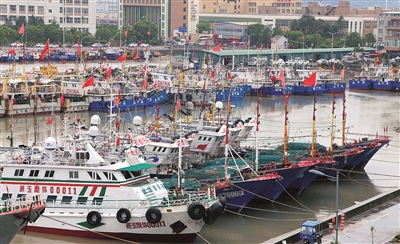 9月13日,玉环市灵门渔港内有序停泊着150多艘避风船只。台风“梅花”靠近,在洋面上作业的渔船和渔运船只接到北斗卫星信息后,立即回港避风。
