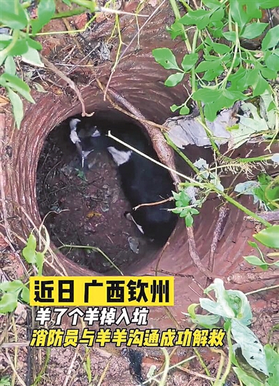 近日,广西钦州,羊咩咩一心吃草没注意脚下,不慎失足掉进草丛中隐藏的深坑。消防员赶赴,老远就听见咩咩的求救声,将其救出后直接抱在怀里,还调皮表示“抱着‘羊了个羊本羊’,能不能通关打入羊群内部”。小羊:反正俺是从深坑通关了,感谢消防员相助哦!