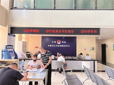 如今的永康市法律援助中心,随处可见各类法律文献。书写台大玻璃板下整齐摆放着十几种常见民事纠纷起诉状范文,资料架上放置了25种公共法律教育自助服务资料,值班窗口的法律援助律师桌上搁着《律师每次值班必读》……