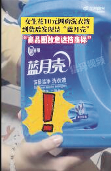 10月9日,河北廊坊,女生花10元网购洗衣液,到货后发现是“蓝月壳”。据李同学称,室友花10元网购了一瓶洗衣液,另外一个室友好奇自己买的一小瓶都15元,这个怎么才10元,到货后细看才发现商家把商标遮挡住了,当时大家都在笑,希望消费者在网购时擦亮眼睛。