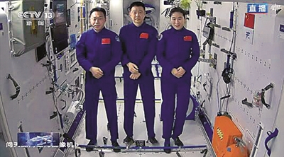 10月12日16时01分,“天宫课堂”第三课在中国空间站开讲,新晋“太空教师”陈冬、刘洋、蔡旭哲为广大青少年带来一场精彩的太空科普课,展示了空间站问天实验舱工作生活场景,演示了微重力环境下毛细效应实验、水球变“懒”实验、太空趣味饮水、会调头的扳手等神奇现象,并生动讲解实验背后的科学原理。