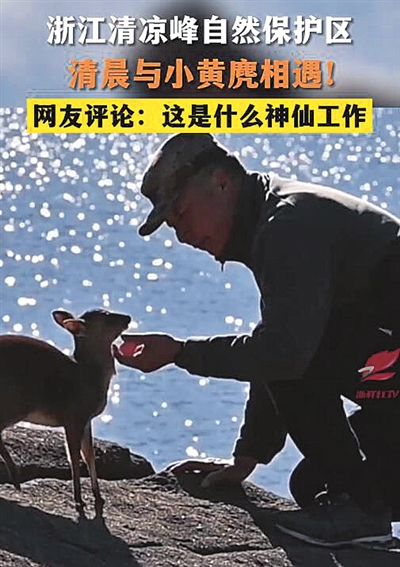 10月12日,浙江清凉峰国家级自然保护区,千顷塘保护站工作人员章叔岩,分享了自己清晨和小黄麂相遇的视频。据介绍,小黄麂目前处于被救助的状态,将在合适的时间放归自然。