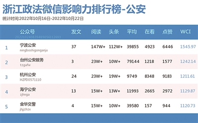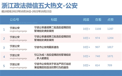 本期公安篇,“宁波公安”表现优异。不仅获得“双料冠军”,热文榜前五名也均来自它,且都为10万+阅读量。