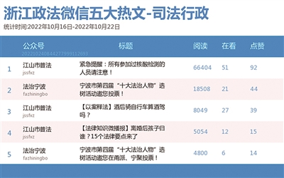 “江山市普法”作为上期“黑马”,本期一如既往优秀。它蝉联“双料冠军”,《紧急提醒:所有参加过核酸检测的人员请注意!》一文以6.6万的阅读量居于榜首。