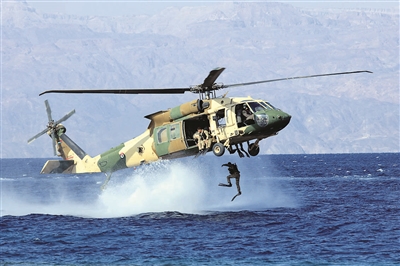 11月1日,在约旦亚喀巴,约旦特种部队在国际特种作战部队武器装备展开幕式上展示海上反恐演练。