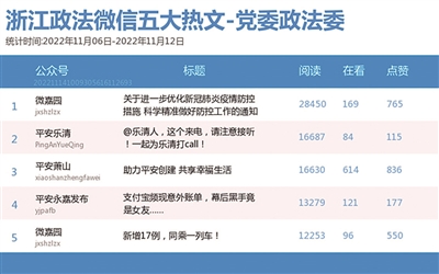本期党委政法委榜,老将“微嘉园”在激烈的竞争中继续稳坐两榜榜首,其发布的《关于进一步优化新冠肺炎疫情防控措施 科学精准做好防控工作的通知》一文,收获28450阅读数。目前防控形势依然严峻复杂,希望大家做好自我防护。