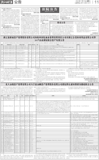 光大金瓯资产管理有限公司与宁波金融资产管理股份有限公司债权转让通知暨债务催收联合公告