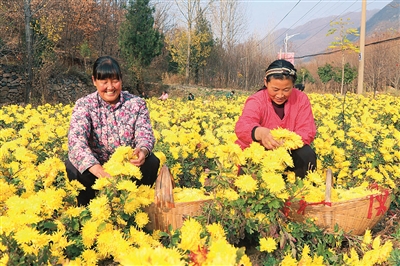 11月19日,洛阳市汝阳县付店镇火庙村农民在采摘金丝皇菊。