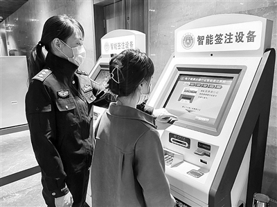 “真方便!”近日,不少市民在温州市民中心出入境办证大厅的智能签注设备上顺利办理了签注手续。目前澳门疫情形势平稳,内地居民赴澳门旅游需求增多。为确保智能签注设备有序正常投人使用,温州出入境受理窗口派专人负责设备管理及现场秩序维护。