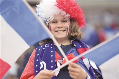 | 12月18日,一名法国队球迷在比赛开始前舞动国旗 新华社 李明 摄 |