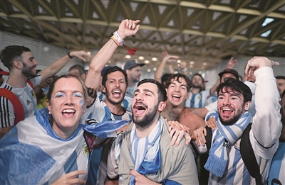 | 12月18日,阿根廷队球迷在赛场外庆祝球队夺冠 新华社 肖艺九 摄 |