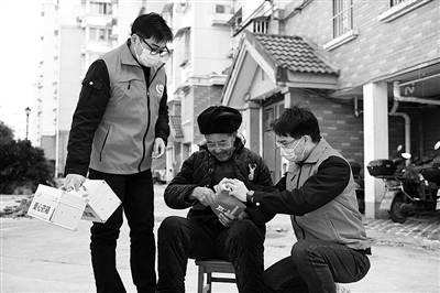 12月22日,桐庐县市场监管局暖心小分队在县城金龙花园小区为居民送爱心药。这段日子,桐庐县发动年轻干部组建暖心小分队,实行分组联系、到户到人,为群众提供急需生活物资。