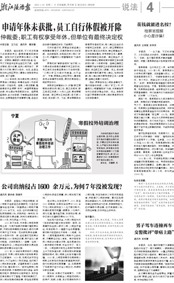本报讯 临近年底,不少还没来得及休年假的员工,都想赶着把年假休掉。在杭州打工的廖某也是这么打算的。没想到,请假时公司却没批准,他一气之下就自作主张给自己放了假。他更没想到,因为这事,他被公司开除了。廖某大为不服,要讨个说法。近日,此案经杭州市上城区劳动人事争议仲裁委员会仲裁,有了结果。