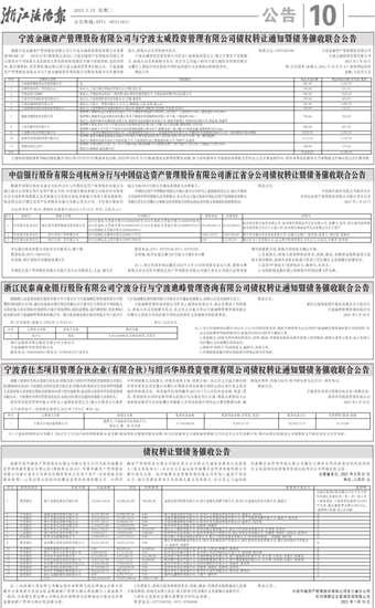- 宁波金融资产管理股份有限公司与宁波太威投资管理有限公司债权转让通知暨债务催收联合公告