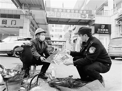 “快过年了,别让不法分子有机可乘,大家一定要捂好自己的钱袋子。”随着春节临近,玉环公安局新城派出所民辅警深入辖区给群众送上“平安福”,并提醒大家注意防范电信网络诈骗,共同营造“全民反诈”的良好氛围。