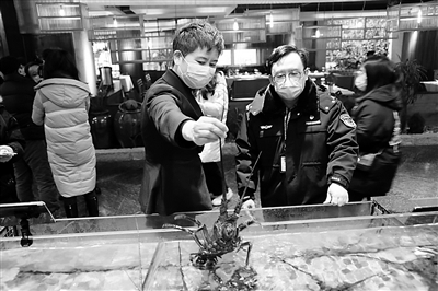 10时30分左右,记者随执法人员进入藏鲜工坊后厨核心区域,多名厨师正在忙着备菜、炒菜,所有人都戴着口罩、帽子,餐具清洗台干净整洁。“像这样一家主打海鲜的酒店,市民更关心的是食材的新鲜度以及保鲜质量是否符合要求,切配是否严格按照工艺执行。”执法人员又打开冷藏柜,仔细检查里面放置的冷冻食品,“从检查情况来看,这家店是符合规范的。”