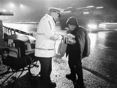 本报讯 近日,杭州富阳公安交警大队场口中队交警在320国道巡逻时,发现一名打算骑乘三轮车回乡过年的大叔。“车票我来给你买!”交警的一句话,让大叔心里暖暖的。