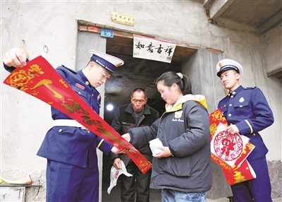 17日,消防员严闻文和张哲浩驱车1个多小时,走进荷地镇青社村的小童(化名)家。小童今年13岁,妈妈在她出生不久便离家出走,爸爸在她8岁时因病去世。从小跟着爷爷奶奶生活的她很懂事,“代理爸爸”一进家门,就主动汇报学习情况,“这学期我拿了6张奖状。”严闻文和张哲浩给小童送上书包、文具和零食礼包等,帮他们家配备了灭火器、加装了烟雾报警器,还与她一起贴春联,农家小院不时响起欢声笑语。
