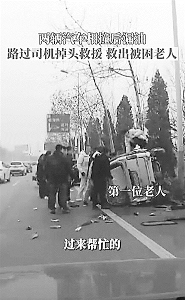 1月26日,山东济宁,一对夫妻驾车回家,发现一面包车侧翻冒着浓烟,便调转车头上前帮忙。事故车里有两位老人,车门变形打不开,小伙便爬上车顶展开救援。期间,不少路过车辆纷纷停下,前后有15-20人过来帮忙。最终,两位老人成功获救,并无大碍。