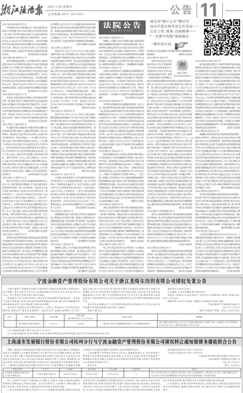 浙江法治报 公告 00011 法院公告 2023-01-29 2 2023年01月29日 星期日