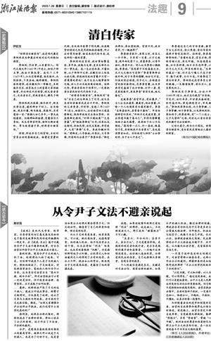 《说苑》是汉代文学家、经学家、目录学家刘向汇集先秦及汉初经史子集历史故事和民间传说所编撰的一部史书。在《说苑·至公》篇中记载的令尹子文法不避亲的故事,对当今法官如何坚守公平正义极具启示意义。