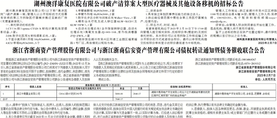浙江省浙商资产管理股份有限公司与浙江浙商信安资产管理有限公司债权转让通知暨债务催收联合公告