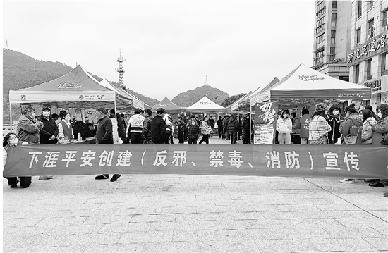 | 春风送岗不忘普法 近日,建德市下涯镇新年“春风送岗”专场招聘会在之江大厦广场举行。借此机会,镇政府工作人员向前来应聘的求职人员展示毒品仿真模型,发放禁毒相关法律法规知识的宣传折页,并鼓励大家共同参与到禁毒行动中来。同时,现场设立了普法咨询台,着重介绍法律援助申请、劳动维权的途径方法等。 通讯员 汪睿 摄 |