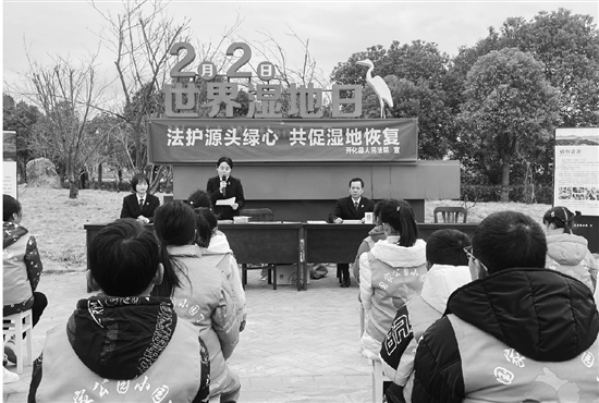 | 司法保护生态湿地 近日,开化县人民法院联合县林业局、马金镇政府、县野生动物保护协会开展“法护源头绿心 共促湿地恢复”主题活动,并挂牌成立金溪省级湿地公园“共享法庭”和湿地司法保护示范基地,进一步加强生态湿地司法保护力度。 通讯员 方江琪 杨雅芯 摄 |