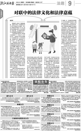 每逢春节,家家户户都要贴春联。春联亦对联,又称楹联或对子,是中华传统文化之瑰宝。在古代,对联的使用场合十分广泛,到清代达到鼎盛,很多人以此抒情明志,内涵丰富。其中蕴含法律文化、法律意蕴的对联楹联也不少。