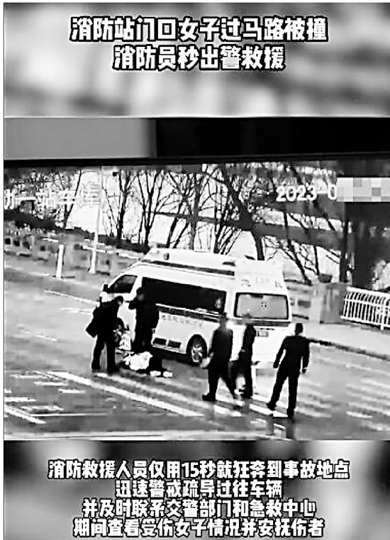 近日,甘肃兰州,女子过马路时不慎被汽车撞倒,这一幕恰好被归队的消防员发现,立即组织队友前去救援。消防员一路狂奔,仅15秒就赶到女子身侧,组成“人形警戒线”提醒疏导过往车辆,同时拨打120救人。等待期间,他们一直默默守护在侧,直到将女子抬上救护车送医救治。