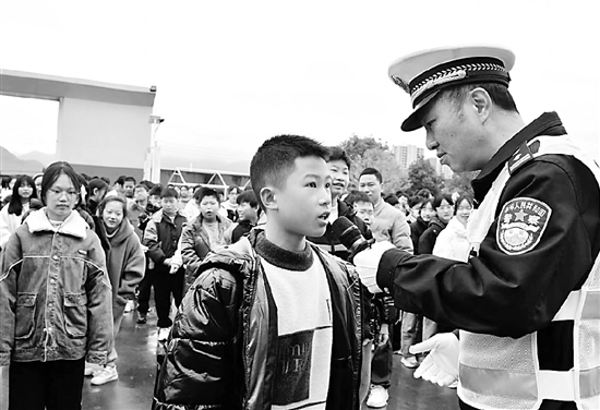 近日,三门县公安局交警大队走进金麟湖实验学校,开展“开学第一课”交通安全宣传活动。民警通过警车、大货车现场模拟,详细讲解交通法规和安全常识,并采取互动提问、现场参与模拟等形式,提醒学生遵守交通法规,做到文明安全出行。