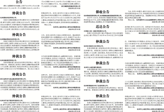 特此公告。 杭州市上城区劳动人事争议仲裁委员会