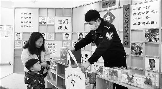 近日,温州市公安局龙湾区分局瑶溪派出所民警王炳铼来到新时代文明实践站,组织开展“游园”活动,通过反诈亲子游戏、发放安全防范宣传礼品等方式,把反诈安全知识送到群众身边。 通讯员 冯明逸 摄