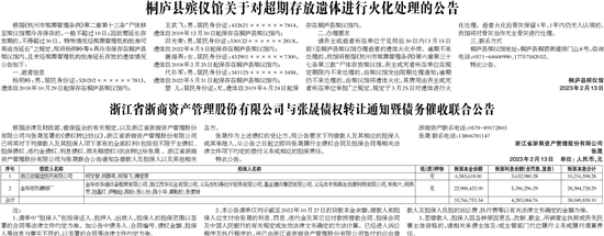 根据法律及财政部、银保监会的有关规定,以及浙江省浙商资产管理股份有限公司与张晟签署的《债权转让协议》,浙江省浙商资产管理股份有限公司已将其对下列借款人及其担保人项下享有的全部权利(包括但不限于主债权、担保债权、违约金债权、利息债权、损失赔偿权)依法转让给张晟 。浙江省浙商资产管理股份有限公司与张晟联合公告通知各借款人及担保人以及其他相关各方。
