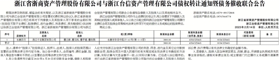 浙江省浙商资产管理股份有限公司与浙江台信资产管理有限公司债权转让通知暨债务催收联合公告