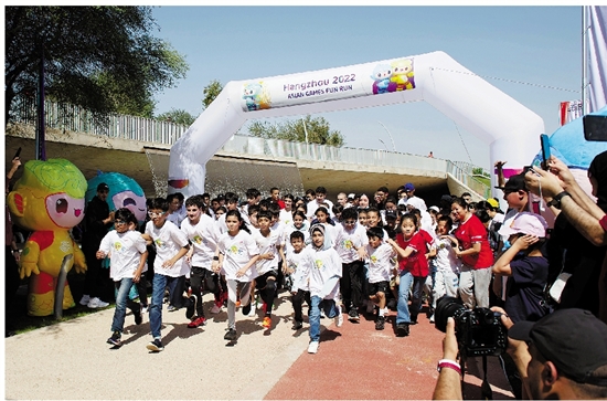 当日,“迎杭州亚运会趣味跑”在卡塔尔首都多哈举行。