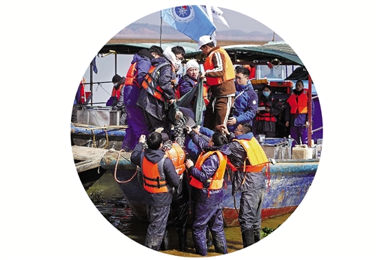 江豚是长江水生生物保护的旗舰物种,国家一级重点保护野生动物,种群极度濒危。由于2022年长江中下游旱情影响,江西鄱阳湖松门山水域砂坑中有超过30头江豚难以游入航道深水区。