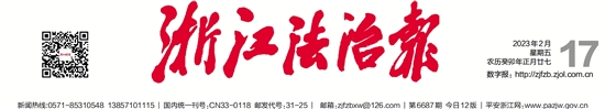 新闻热线:0571-85310548 13857101115 | 国内统一刊号:CN33-0118 邮发代号:31-25 | 邮箱:zjfzbxw@126.com | 第6687期 今日12版 | 平安浙江网:www.pazjw.gov.cn