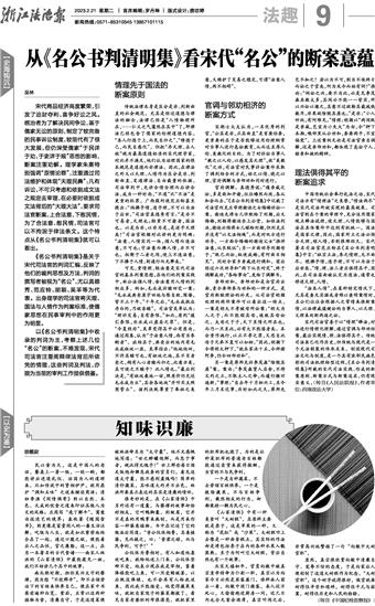 宋代司法官善于以“情理”释法,对法进行情理化理解,通过官调与邻劝结案,最后实现情、理、法俱得其平。传统司法虽已化作历史,但传统与现代是一个无法割裂的传承关系。创设现代司法文化与制度,是一个具有浓郁民族色彩的司法机理转型过程。《名公书判清明集》所载的宋代司法实践、形成的断案原则、断案方式与断案追求,仍有现实意义。(转自《人民法院报》,作者单位:西南政法大学)