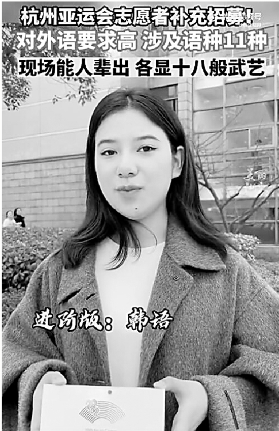 这两天,杭州亚运会、亚残运会赛会志愿者补充招募面试选拔正在开展。据了解,本次补充招募,是在原有志愿者的基础上,面向全球补充招募3万人。感兴趣的同学们别错过了。