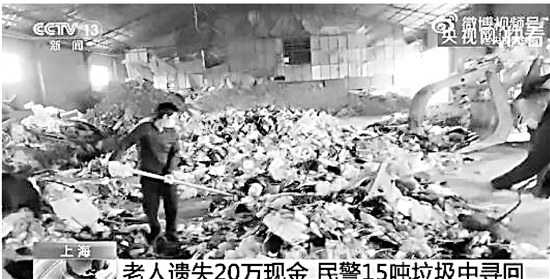 近日,上海奉贤区,一位老人外出时不慎将装有20万元现金的塑料袋遗失,当地警方在接到报案后,从15吨垃圾中找回了现金。