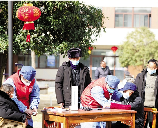 近日,德清县乾元镇一家老年公寓里,家庭医生为老人提供巡诊服务。疫情防控措施优化后,乾元镇中心卫生院每天派6名家庭医生分别到3家养老机构巡诊,对124名老人进行健康监测、问诊记录,做到早发现、早干预、早治疗,当好乡村健康守护人。